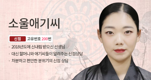 신규 상담사 "[신점] 소울애기씨 200번 " 선생님이 새롭게 등록되었습니다.