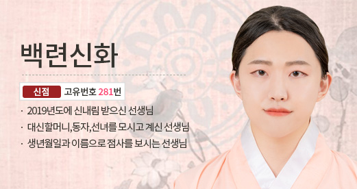 신규 상담사 "[신점] 백련신화 281번 " 선생님이 새롭게 등록되었습니다.